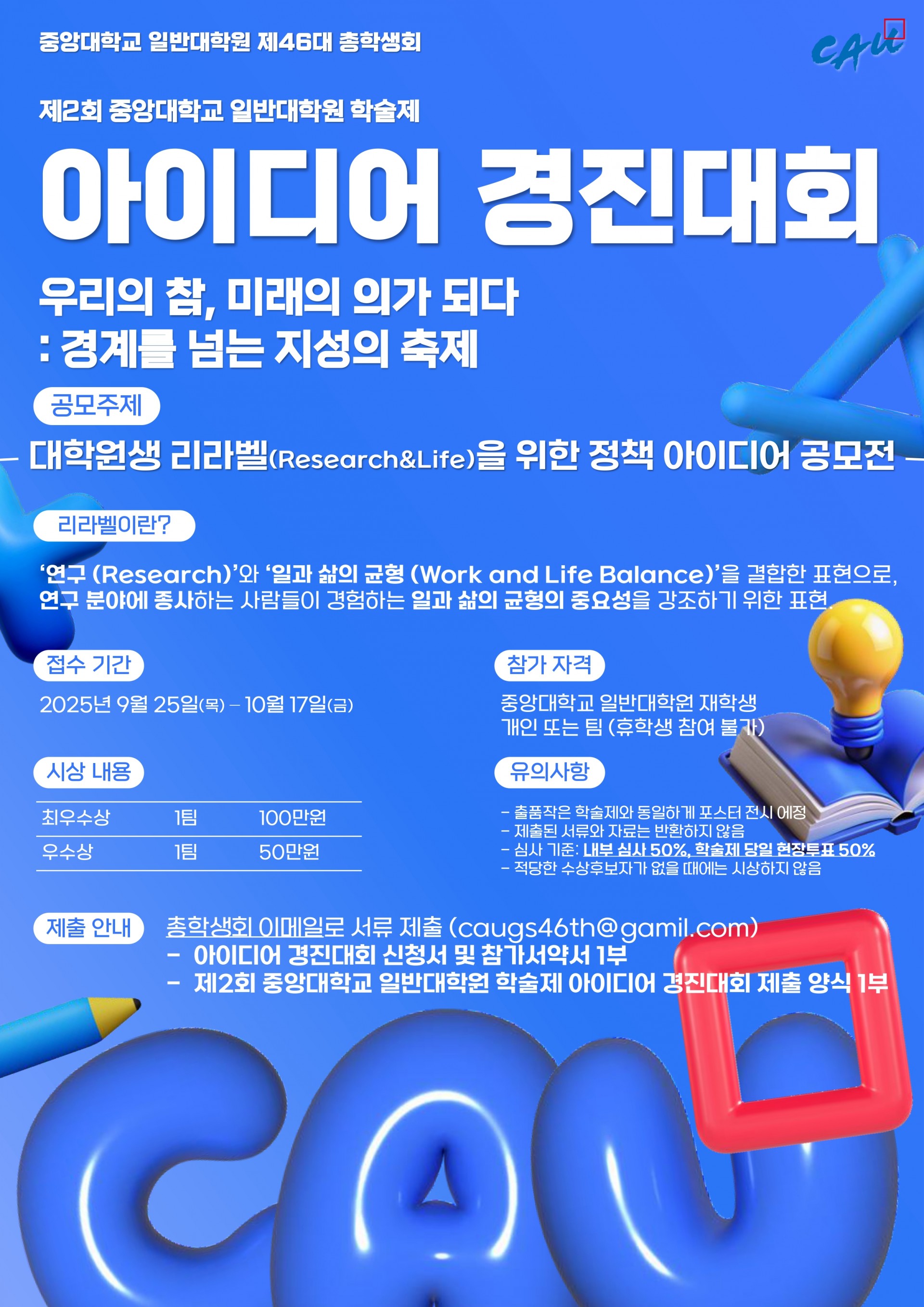 2025 제2회 중앙대학교 일반대학원 학술제와 함께 진행될 아이디어 경진대회를 소개합니다.