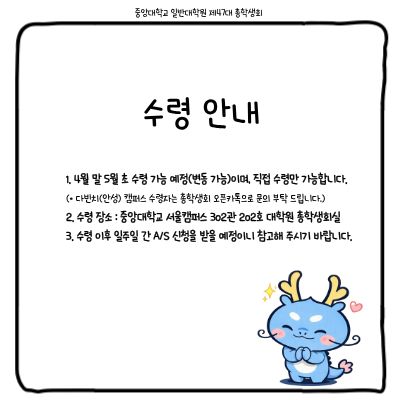 4. 수령 이후 일주일간 A/S 신청을 받을 예정이니 참고해 주시기 바랍니다.